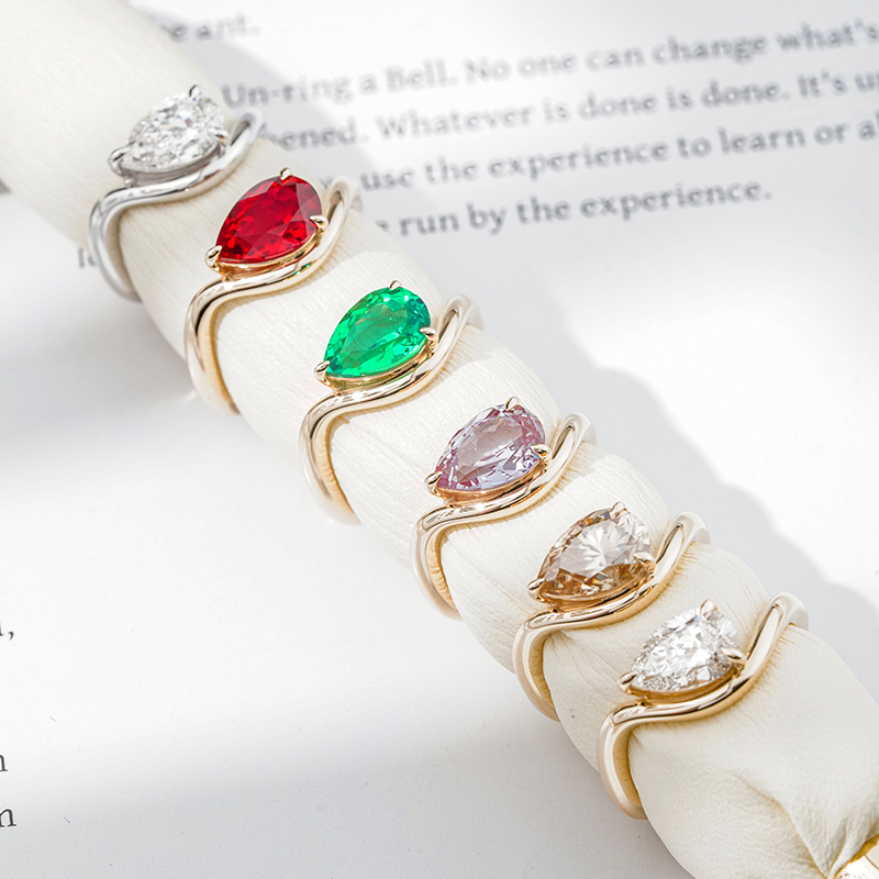 6×9mm Pear Cut Lab Grown Gemstones Lab Diamond Solitaire Engagement Ring
